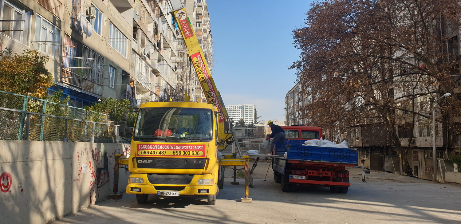 ჩვენ გთავაზობთ როგორც სამშენებლო მასალის,ასევე ავეჯის მაღალ სართულზე აზიდვა-ჩამოზიდვის მომსახურებას მე-9სართულის ჩათვლით.საჭიროების შემთხვევაში გვყავს ჩვენი მუშა ხელი და სატვირთო ავტომობილიც.შეგვიძლია უზრუნველვყოთ ხარისხიანი სამშენებლო მასალების გარანტიით ადგილზე მოტანა,ასევე, შეგვიძლია უზრუნველვყოთ სამშენებლო ნარჩენების გატანა